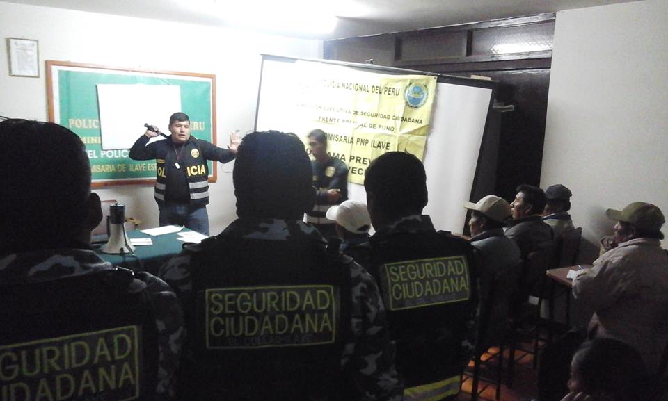 El domingo pasado 06 de agosto, la Policía Nacional en coordinación con la Sub Gerencia de Seguridad Ciudadana y miembro titulares del Comité Distrital de Seguridad Ciudadana, cumplieron con la capacitación dirigido a las Juntas Vecinales y personal serenazgo a fin de fortalecer la comprensión de sus funciones dentro de la seguridad ciudadana en el distrito de Ilave.