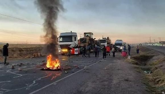 La medida de protesta convocado por diversas organizaciones se realiza cerca del distrito de Caracoto, en la provincia de San Román