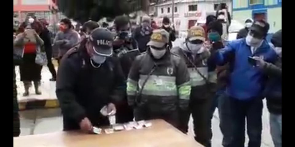 Cabe mencionar que uno los uniformados entregó en público una envoltura de plástico con los billetes arrebatados.