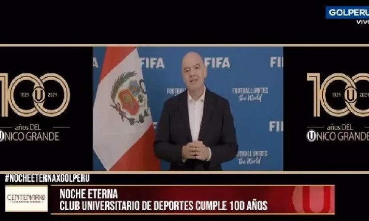 Gianni Infantino, a través de un video, se hizo presente durante las celebraciones por el Centenario de Universitario de Deportes, dedicándole unas palabras al club crema que fueron bien recibidas por sus hinchas en la ‘Noche Eterna’.