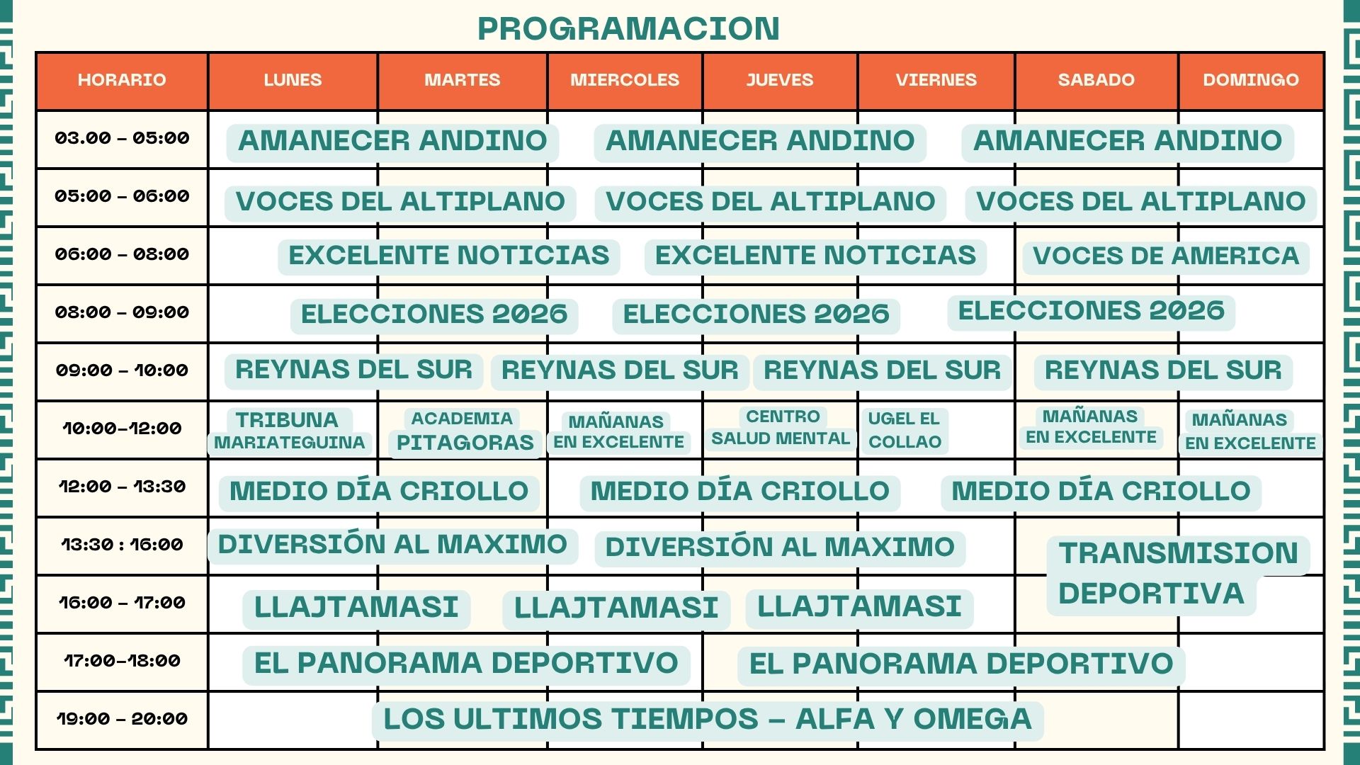 PROGRAMACIÓN DE LUNES A DOMINGO