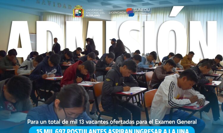 Un total de 15 mil 697 jóvenes postulantes inscritos, rendirán su examen de admisión para acceder a una vacante en los 44 programas de estudio de 20 facultades de la Universidad Nacional del Altiplano Puno, a desarrollarse este sábado 23 y domingo 24 de marzo por la modalidad de Examen General Admisión Marzo 2024. Para un total de mil 13 vacantes ofertadas para el Examen General.