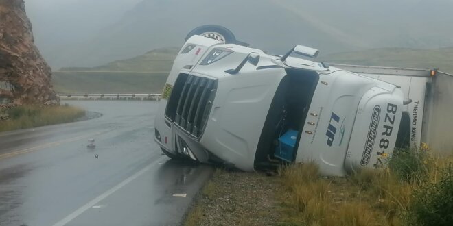 La mañana de este domingo, el tráiler de placa BZR-814 se despistó en la vía Umanasa-Cangalli y quedó volcado en una curva. El conductor de la unidad fue encontrado sin signos vitales.