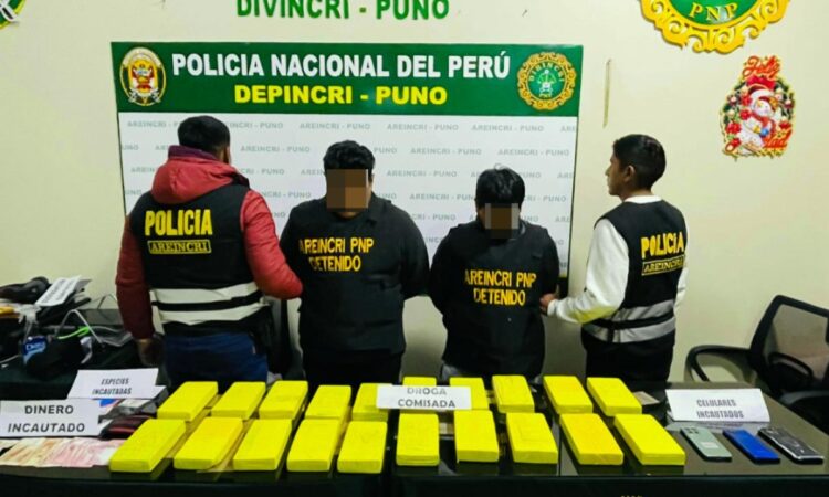 En horas de la noche, agentes policiales del Areincri Puno intervinieron en la carretera Panamericana Sur en la salida a Ilave a una camioneta Toyota Hilux de placa de rodaje BAL-782 donde iban dos varones, tras solicitarles sus documentos revisaron el vehículo hallando una bolsa grande de polietileno de color rojo y blanco conteniendo 20 paquetes, tipo ladrillo, precintados con cinta de embalaje de color amarillo, los que contenían una sustancia blanquecina compacta, con una imagen de un delfín en bajo relieve.
