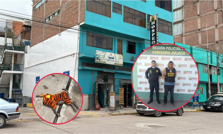 El personal policial de la comisaría de Juliaca detuvo a un sujeto acusado de lanzar desde el quinto piso de un hospedaje a un perrito, causando la muerte instantánea del animal.