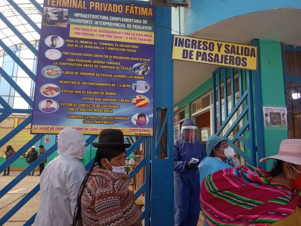En visita inopinada de prevención al terminal privado «Fátima», personal de la Unidad de Salud Ambiental de la REDESS Puno y de la comuna local concluyeron que la ejecución del plan de vigilancia y control Covid-19 para reducir el riesgo de contagio se encuentra implementado al 70% según lo indicó M.V.Z. Guillermo Pilco Pari, de la Unidad de Salud Ambiental de la Red de Salud Puno.