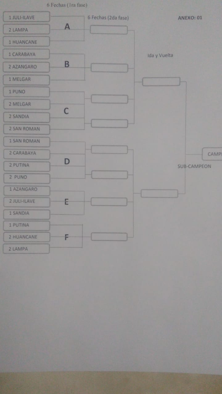 Al cumplirse la reunión en la liga departamental de Puno este sábado ultimo , aprobaron iniciar con el campeonato de la etapa departamental 2018 el 01 de julio y así mismo aprobaron las bases complementarias del mismo , se estableció 6 grupos para esta etapa , los equipos ilaveños y juleños que quedaron anexados en uno solo este año en la etapa provincial  , estaran integrando diferentes grupos , el campeón estará integrando el Grupo A y el sub campeón el Grupo E , en el presente año en total participaran 20 equipos.