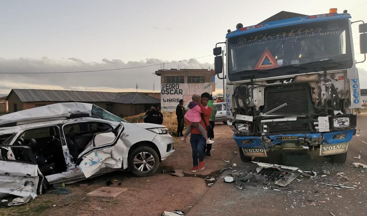 La colusión tuvo lugar en el sector de Tumi Grande. El choque fue frontal. Los ocupantes del auto siniestrado perdieron la vida en el acto. Los testigos solo auxiliaron a dos heridos graves que fueron evacuados de emergencia al hospital de la provincia de Huancané. Se trata de una menor de edad y el chofer del auto siniestrado.