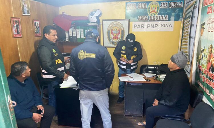 Las diligencias se vienen realizando en la Comisaria de Sina, Juliaca, Cusco, Arequipa y Moquegua, viviendas de los agentes policiales, Gavino Ortiz de Orue Cárdenas, Eber Henry Quispe Yucra, Sammer Sahun Mamani Velásquez, Eddy José del Carpio Parque, y Alfredo Rene Madueño Herrera, quienes tienen la condición de efectivos policiales del Puesto de Auxilio Rápido del Distrito de Sina, Provincia de San Antonio de Putina.