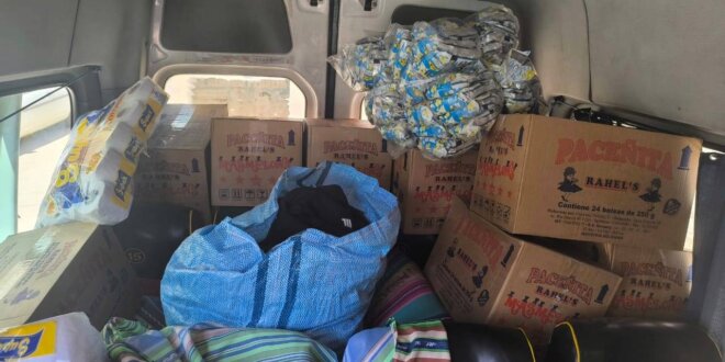 De acuerdo a la información preliminar, al inspeccionar la miniván de placa ZAS-952, se encontró una variedad de productos como galletas, ropa de segunda uso, balones de gas, gaseosas y snacks, los que no tenían la documentación necesaria para su comercialización legal.