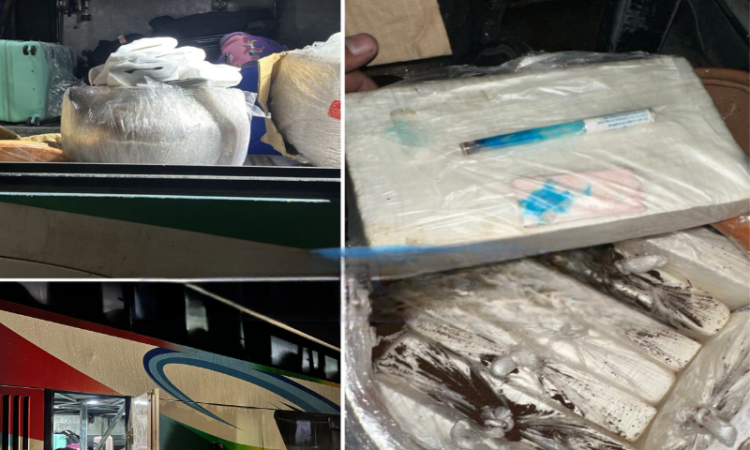 El personal de Aduanas alertó a los agentes ya que en la bodega del bus había lo que parecía una olla de material de arcilla encintada conteniendo papel higiénico y un paquete rectangular sospechoso que sobresalía, los efectivos policiales de inmediato realizaron una minuciosa revisión logrando hallar 9 paquetes tipo ladrillo encintados de color blanco, los que, al ser sometidos a la prueba de campo dio como resultado una coloración azul turquesa, indicativo positivo para alcaloide de cocaína.