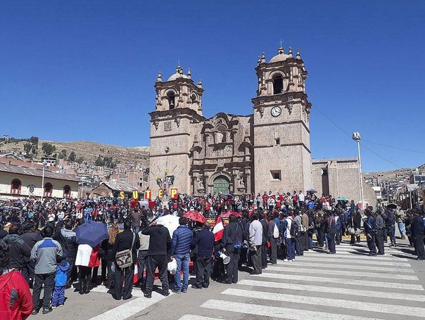 Los agremiados al Sindicato Unitario de Trabajadores en la Educación Peruana (SUTEP) tomaron la Plaza de Armas de la ciudad de Puno, en pleno 28 de julio. De esa forma, ellos dicen rememorar el aniversario patrio.