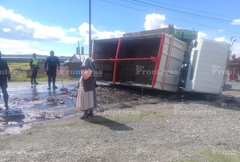 En el camión que llevaba carga de varias cajas de cerveza resultaron heridos Mamerto Alfonso Aroapaza Pino, conductor del vehículo y Maria Magdalena Ccamasacari Saira.