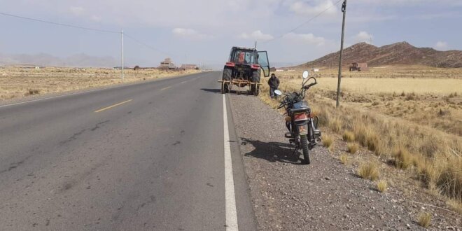 El conductor de una motocicleta que iba junto a su pareja murió tras chocar violentamente por alcance contra un tractor agrícola que transitaba por la zona de Copamarca, Zepita de la vía Puno a Desaguadero.