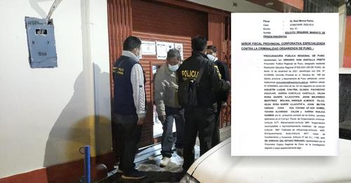 El pedido fue referido a Raúl Merma, fiscal especializado contra la criminalidad organizada. Entre los imputados figuran Olinda Pacheco Aguilar, Narda Castillo Castillo, Hilda Quispe Illacutipa, John Martinez Molina, Enrique Almonte Pilco, Jhon Vargas Coha, Eva Apaza Gómez, Yovana Alvarado Calcín y Karina Huilica Huamán.
