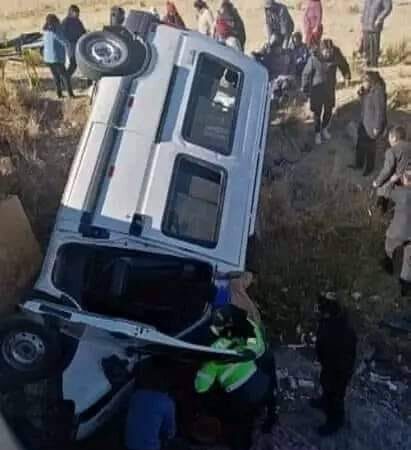 Otro accidente. Una persona dejó de existir y más de 10 pasajeros resultaron con lesiones tras el despiste de un vehículo tipo combi en la carretera Puno-Mañazo, a la altura del puente Challamayo.