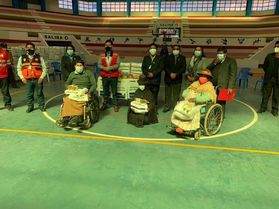 De la misma manera se hizo la entrega simbólica a tres personas en situación de vulnerabilidad y posteriormente se dará la repartición a más de 2 mil 700 beneficiarios en la jurisdicción, en coordinación con la Gerencia de Desarrollo Social mediante Programas Sociales del municipio. Cabe indicar que el presente acto se llevó a cabo en el coliseo cerrado de la ciudad de Ilave.