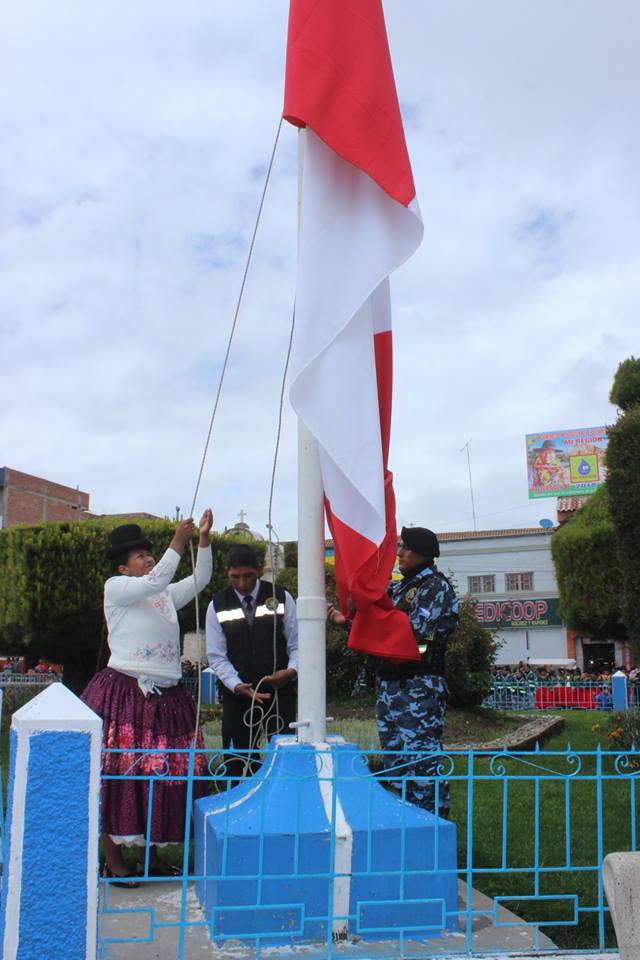 Con presencia de la Regidora, Sra. Marcia Alanoca Quenaya, se dió inicio al Desfile de Honor, participaron también el Programa de Complementación Alimentaria, Mesa de Concertación de Lucha contra la Violencia Familiar y Sexual, Programa Vaso de Leche, Programa de Comedores Populares y la Asociación de Tenientes Gobernadores de la Zona Lago, Alta y Media de nuestra provincia.