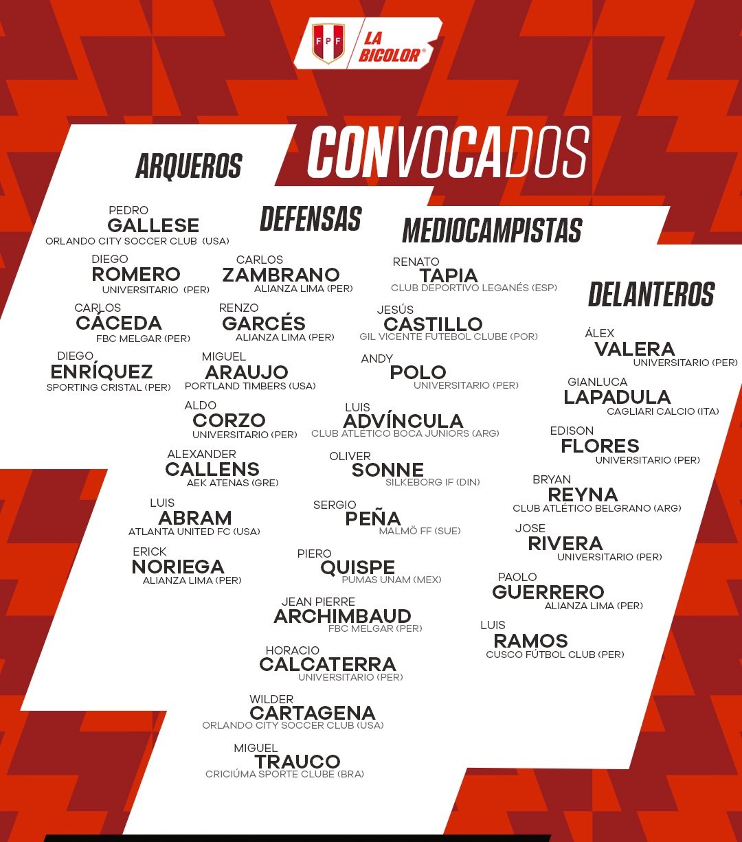 Lista de convocados de la Selección Peruana para enfrentar a Chile y Argentina por Eliminatorias