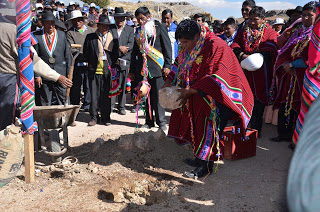 Un día de fiesta vivieron hoy los pobladores de la zona lago del distrito de Ilave, con chakalladas, tarkeadas y cacharparis al ver realidad la colocación de la primera piedra de su carretera. “Hemos sido postergados por muchos años por las autoridades de turno y hoy día el Presidente Regional Dr. Juan Luque Mamani, ha llegado a nuestra tierra para iniciar la obra, por eso nuestro profundo reconocimiento a nombre de las 32 comunidades, 43 parcialidades y 11 centros poblados. Son muchos años de gestiones, de muchas autoridades que ya no están, pero nosotros hemos continuado”; dijo Porfirio Mamani Butrón, Alcalde del Pueblo de Camicachi y Presidente de los Alcaldes de Centros Poblados de la Zona lago de Ilave.