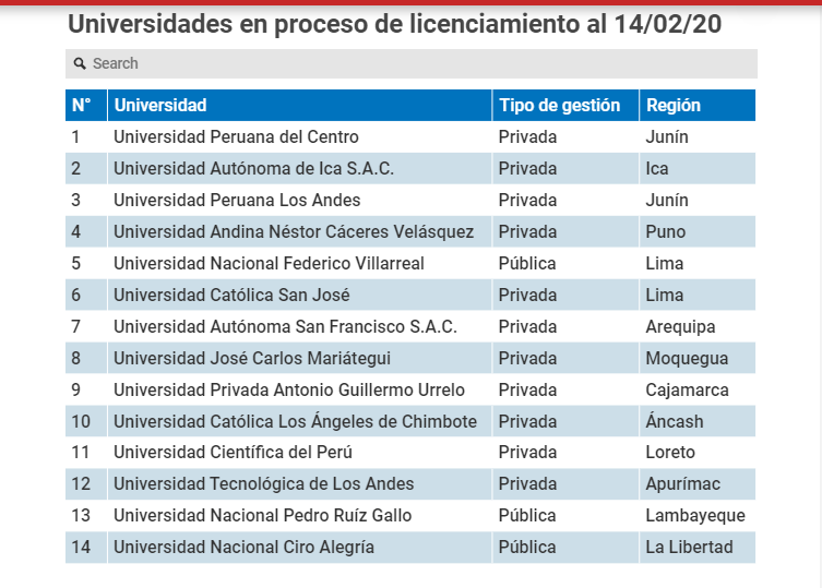 De acuerdo con la última información de esta entidad (al 14 de febrero del 2020), hay 89 universidades que ya obtuvieron el licenciamiento: 45 públicas y 44 privadas.