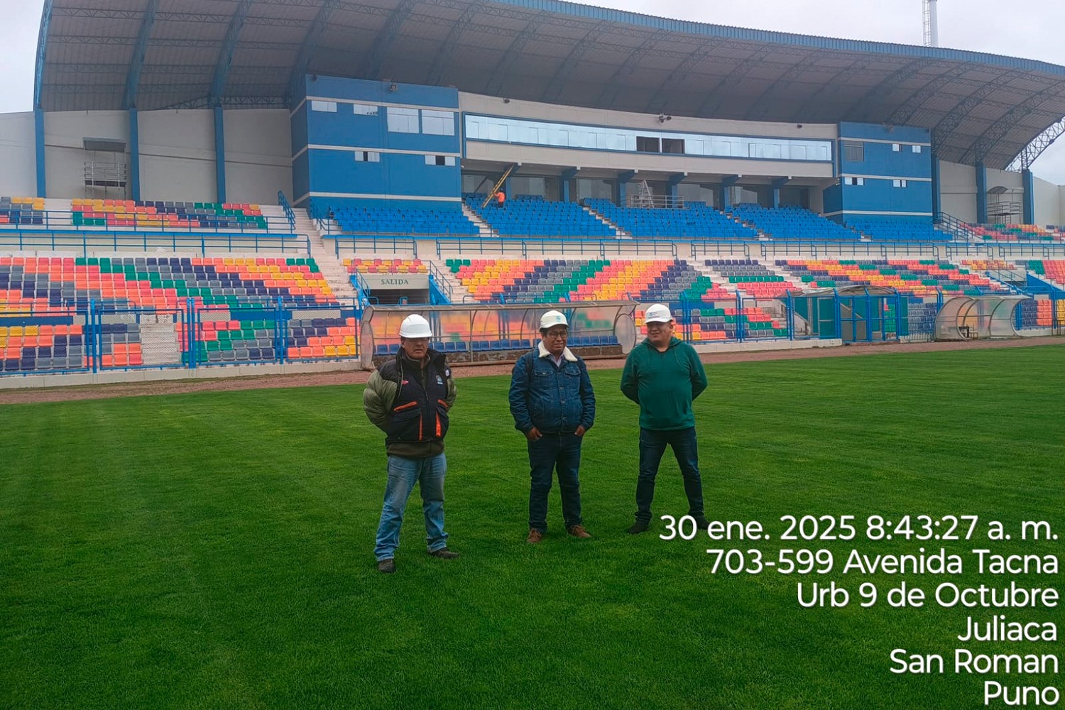 Supervisan avances del mejoramiento del estadio Guillermo Briceño Rosamedina en Juliaca