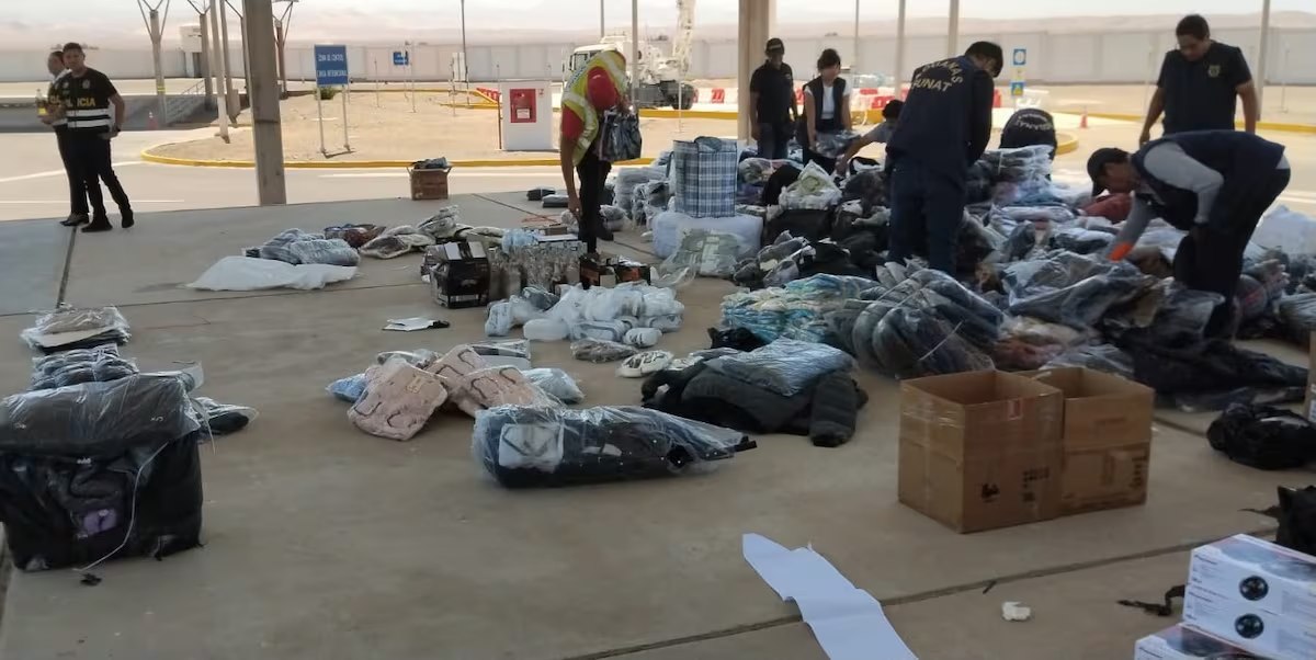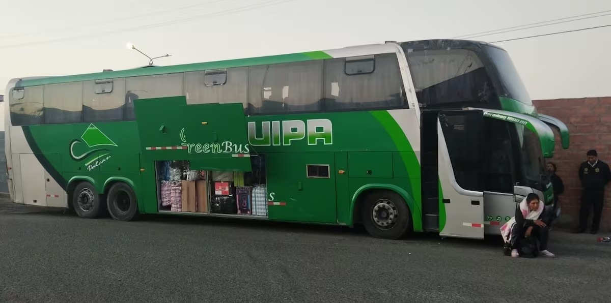 Luego policías con participación del conductor revisaron los diversos compartimentos del vehículo, tanto en la zona de pasajeros y bodega, visualizando mercancía diversa, consistente en zapatillas, equipos de sonido, colchas, prendas de vestir, licores y otros que estaban empaquetados con cinta de embalaje, rafia y bolsas. Los agentes consultaron entre los pasajeros sobre la procedencia de las mercaderías antes mencionadas, algunos de los presentes dijeron que en parte les pertenecía, pero no lograron acreditar de manera documentaria su procedencia.