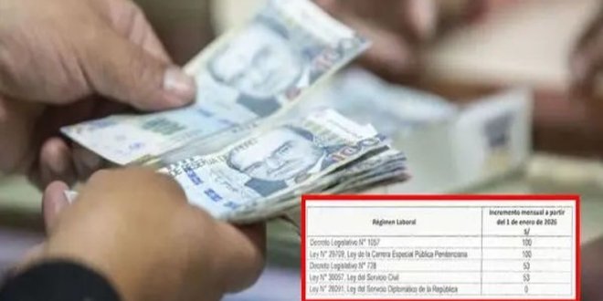 A partir de enero de 2026, cerca de 600 mil trabajadores del sector público recibirán un incremento remunerativo mensual y permanente, como parte del Convenio Colectivo Centralizado 2025-2026, firmado entre la PCM y las cinco confederaciones sindicales nacionales.