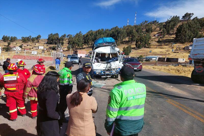 Personal de la compañía de bomberos de Puno y el SAMU llegaron a la escena para auxliar a los lesionados, el chofer del minibus murió casi instantáneamente luego del impacto y su cuerpo permanecía atrapado entre los fierros retorcidos.  (sin fronteras)