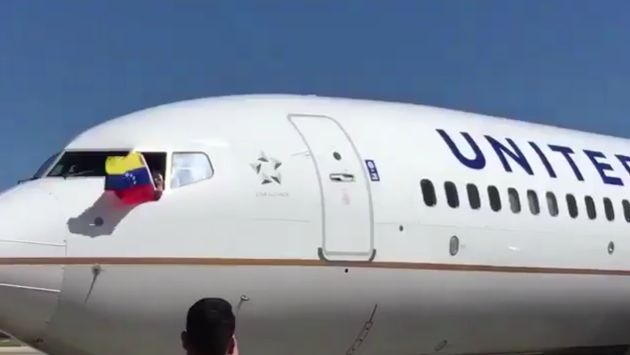 En un gesto de despedida hacia los trabajadores de la aerolínea, el piloto abrió la ventanilla del avión y sacó una bandera venezolana, que generó los aplausos del personal en la pista.