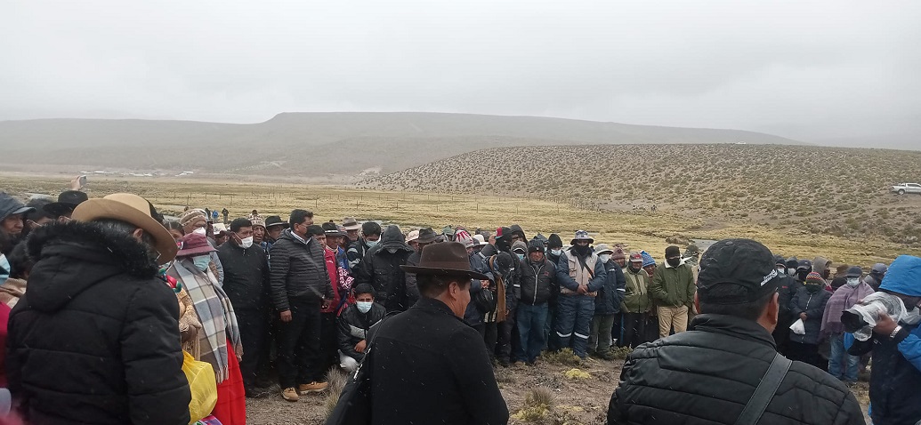 La reunión convocada para el día de hoy sobre el proyecto Vilavilani se viene desarrollando con la presencia del Gobernador Regional de Puno, Funcionarios, Consejeros, Autoridades y población quienes llegaron hasta Vilachaullani para realizar el aforo del caudal de la cuenca Maure.